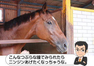 - ニンジンは馬にとってご褒美ですね。草よりも「甘い〜」って感じかな。ほかに、林檎、バナナ、キャベツ、白菜、黒糖などもあげます。