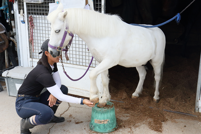 馬によっては、ここに来て初めてニンジンを食べた子もいます。競走馬あがりで食べたことがなくて隣の厩舎の馬が食べているのを見て、「それ食べれるんだ」と確認してから食べるのです。でもグルメで、白菜の緑の葉の部分は食べるけど、白い部分は食べない馬がいたり。あ!絶対に、ニンジンは食べない馬もあっちにいます(笑) - ニンジン嫌いな馬がいるんですか(笑)それぞれ好みがあるんですね。